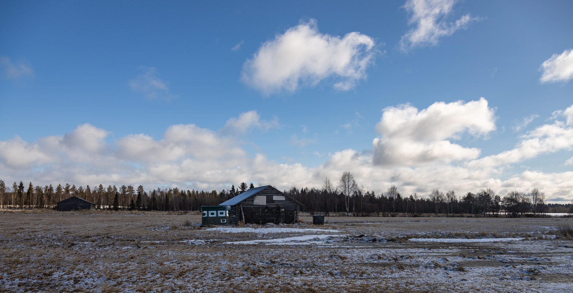 Kurjen ja metsähanhen kuvauskojut sijaitsevat peltoaukealla, johon parhaimmillaan kerääntyy kymmeniä kurkia ja metsähanhia kevätmuuton edetessä.
